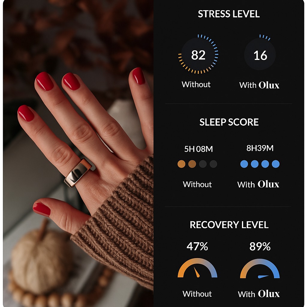IMPORTANT: Genuine Olux Rings are available exclusively through our official website at oluxring.net. Be cautious of counterfeit products on Amazon or other online platforms. To guarantee you receive the authentic Olux Ring, purchase only from our official store.